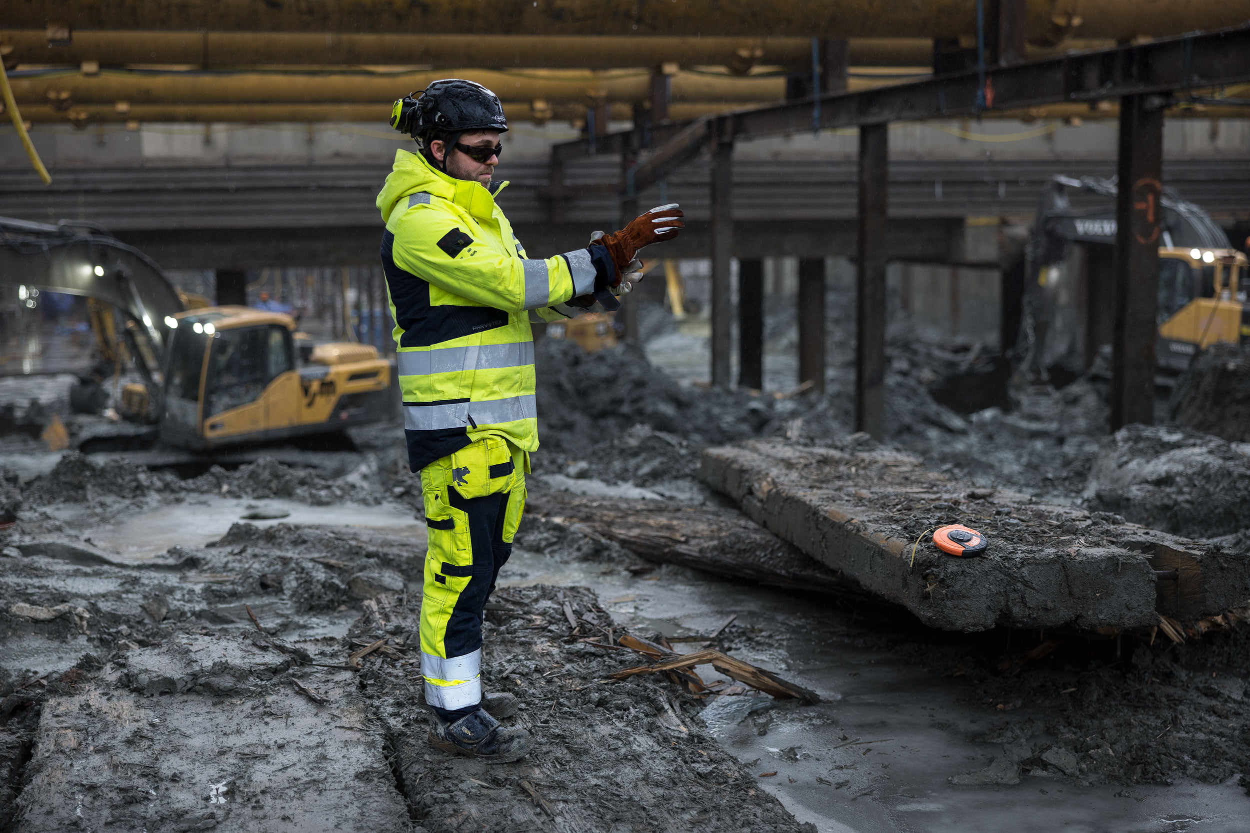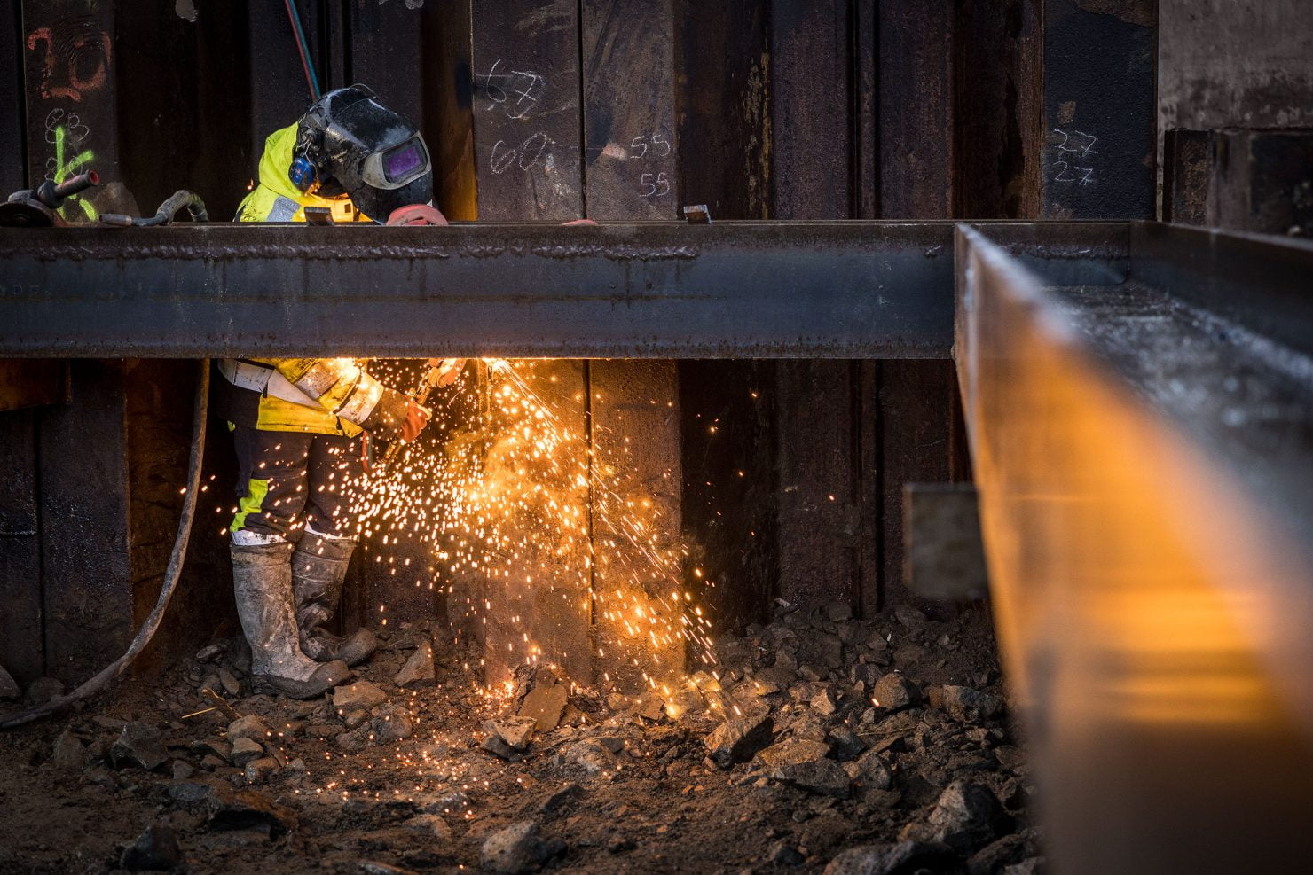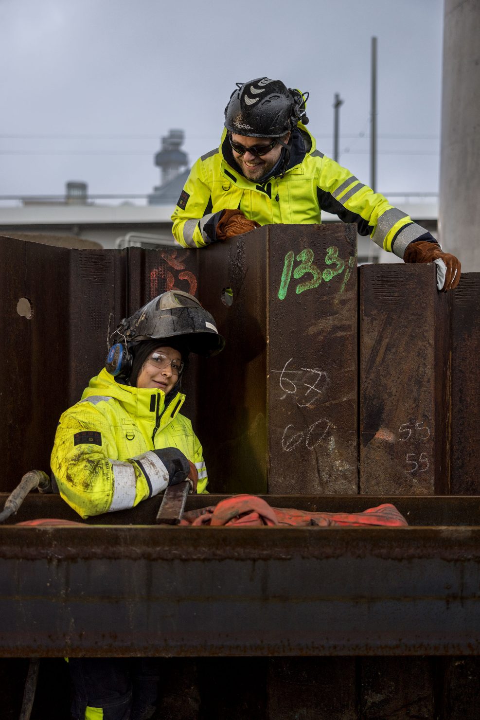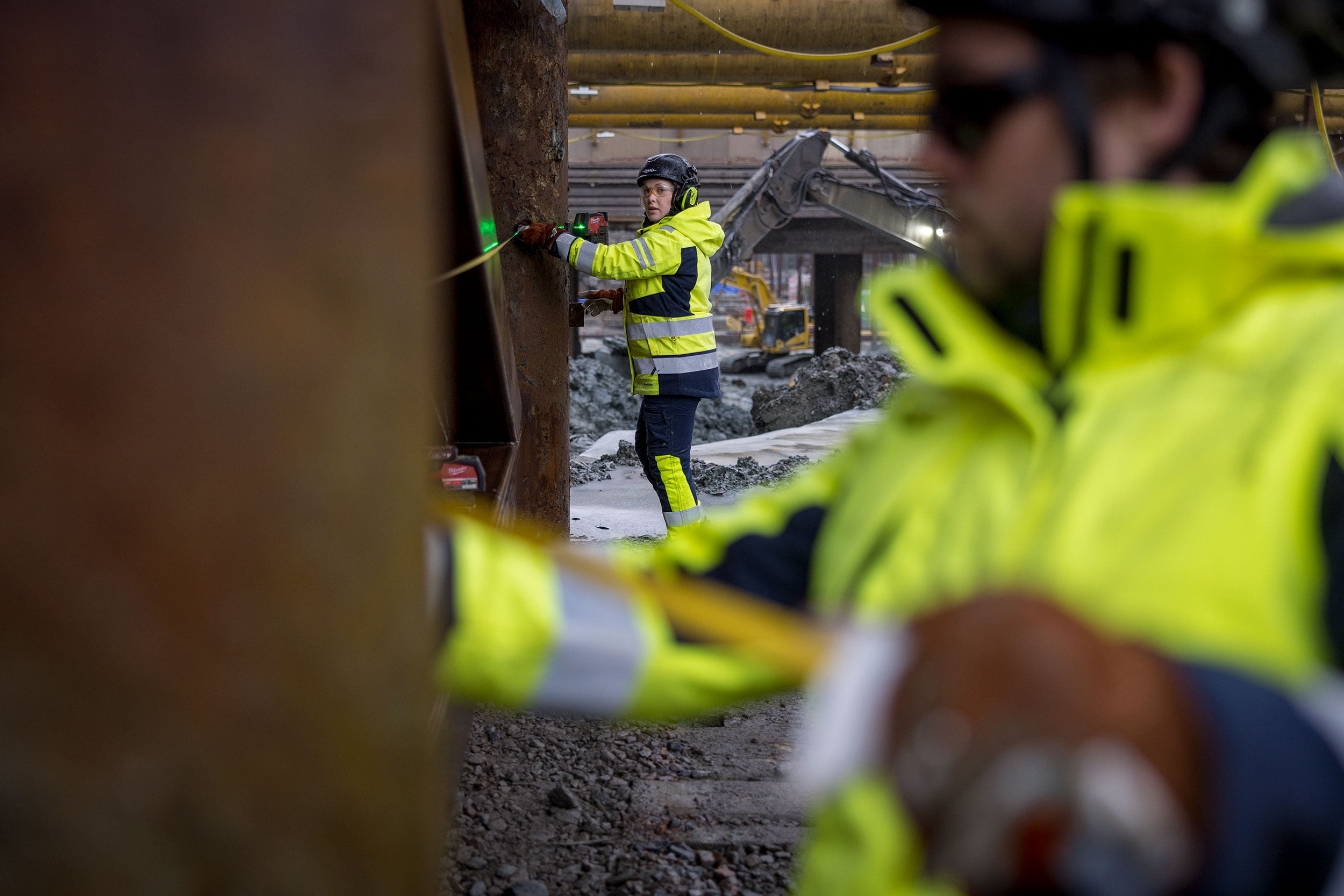 Tarkastajat tulevat usein tarkistamaan, että kaikki hitsaukset ovat kunnossa. Kukaan ei halua, että tukiseinä romahtaa. Turvallisuusajattelu näin suurella työmaalla on järjestelmällistä ja korkealla tasolla, ja Quodin hitsaajilla on siinä erittäin tärkeä tehtävä. Heidän työnsä ansiosta muut rakentajat, kuten kaivinkoneiden kuljettajat, raudoittajat ja paaluttajat, voivat työskennellä työmaalla turvallisesti.
