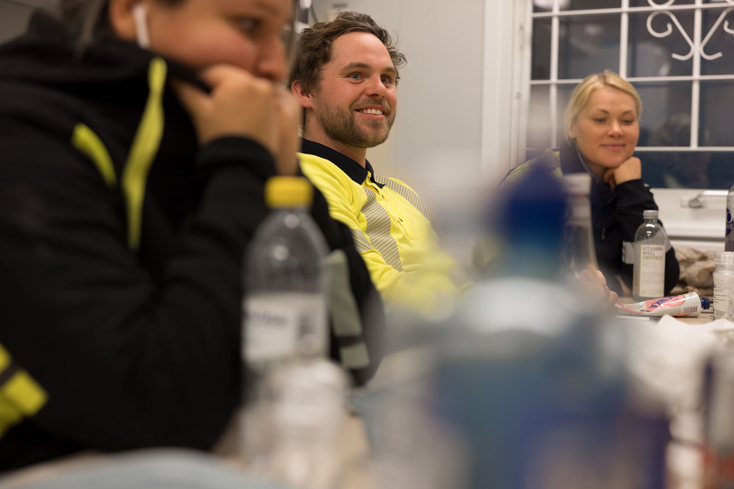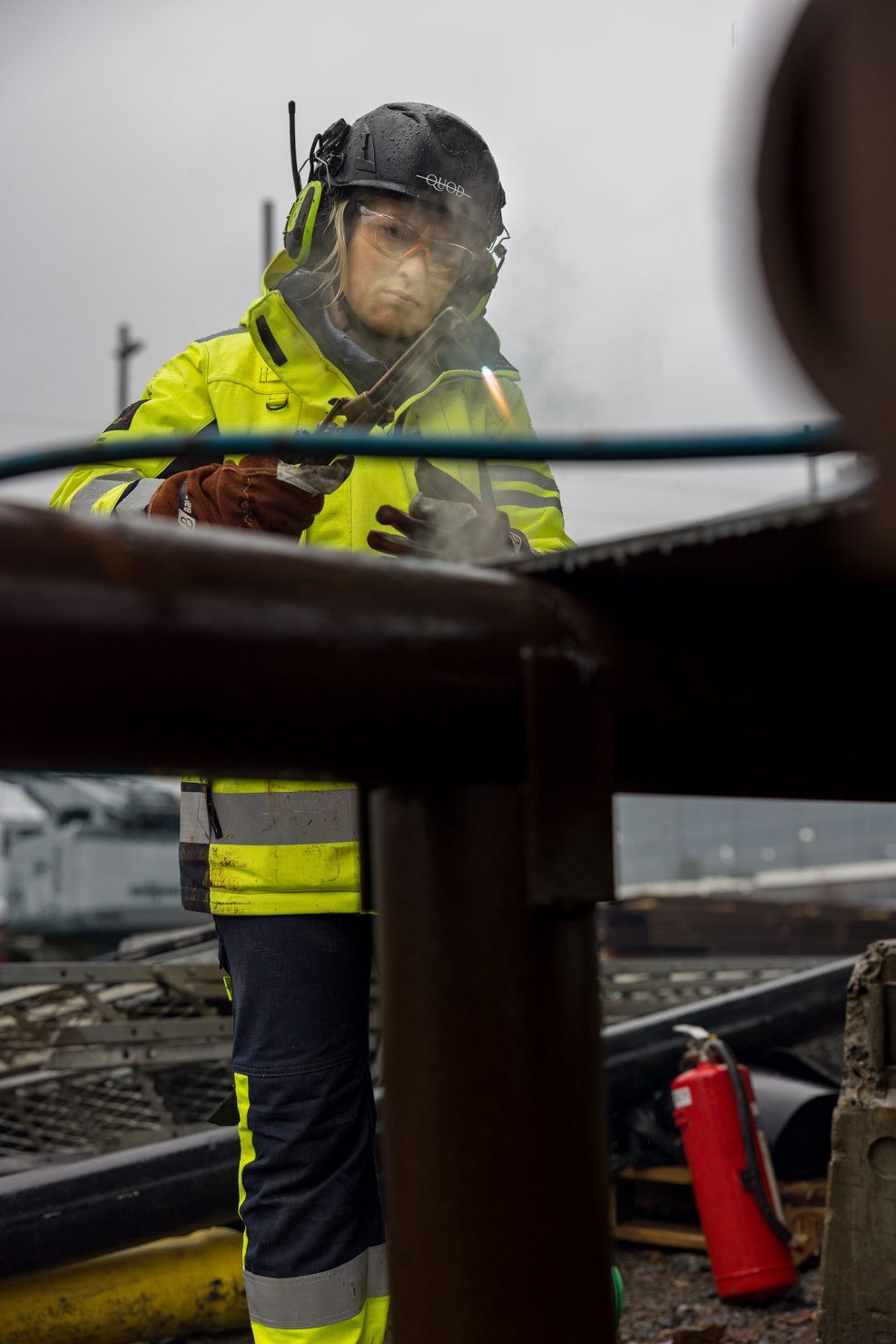Aamupalaverin jälkeen Quodin hitsaajat keräävät työkalunsa ja lähtevät työmaalle, jolle heidät on määrätty työskentelemään.